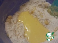 1. Для теста нарезать 250 грамм масла в муку и порубить ножом, затем добавить ванилин. |