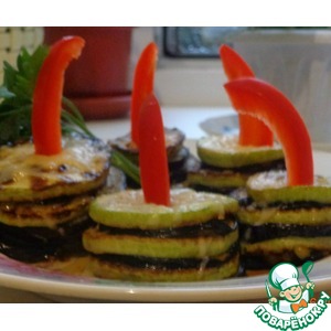 Башенки из баклажанов и молодого кабачка — кулинарный рецепт с сайта Поварёнок.ру.