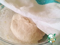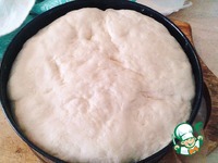 Дно круглой формы застелить бумагой для выпечки и смазать оливковым маслом. Из теста сформировать плоскую лепешку и уложить ее в форму - отставить в теплое место - подойти. |