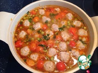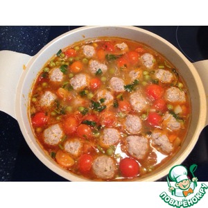 Забрасываем наши фрикадельки в кастрюлю с полуготовой картошкой (мин. 15-20). И снимаем накипь.