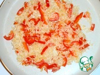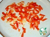 Разогрейте масло в сковороде и потушите лук на среднем огне примерно 6-7 минут. Добавьте перец и чеснок, потушите примерно 2 мин. |