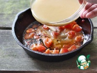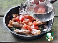 С помидора снять кожуру (предварительно обдать кипятком), нарезать и добавить в сковороду, обжаривать пару минут. |