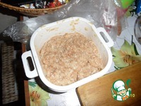 Фарш, размоченный в молоке белый хлеб (корки нужно обрезать), яйцо, соль, перец и приправа для курицы по вкусу. В данном случая я использовал набор из: орегано, майоран, кориандр, красный жгучий перец (на кончике ножа), паприка. (все молотое) |