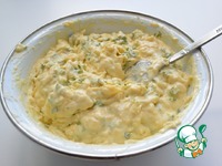 Получившуюся массу перемешиваем так, чтобы сыр равномерно распределился по всему объему. |