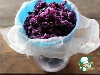 Тем временем пару листов краснокочанной капусты измельчить (блендером например) и через марлю или сито выжать сок. |