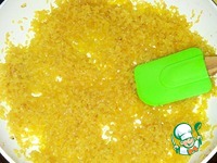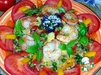 Тигровые креветки обжарить на сковороде в масле по две минуты с каждой стороны не больше, иначе они будут жёсткими. Их не надо выкладывать в мультиварку, креветки разложим сверху на готовое блюдо. |