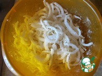 Шинкуем молоденькую морковочку, в сковороду ее! |