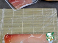 Один ролл накрываем слайсом пармы. Оба ролла накрыть пищевой пленкой. |