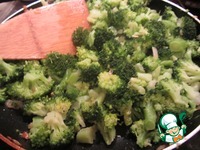 Добавляем брокколи, немного прогреем всё вместе и снимаем с огня. |