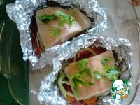 Защипать края фольги. Запекать при температуре 180 - 200 градусов 30-40 минут. За 10 минут до готовности раскрыть фольгу, для того чтобы рыба зарумянилась. |