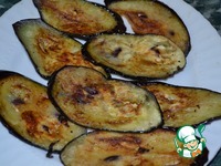 Баклажаны моем, решем на тонкие ломтики - толщиной примерно пол-сантиметра. Обжариваем с двух сторон на среднем огне до образования румяной корочки. Следим чтобы не пережарились - иначе станут ломкимим и рулетики не выйдут. Складываем все на отдельную тарелочку и даем стечь лишнему маслу.