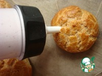 Наполнить суфле кондитерский шприц, начинить пирожные и поставить в холодильник на 1 час. |