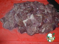 Пока жарятся цыплята, приготовим сам плов. Куриную печень промыть под проточной водой, нарезать на небольшие кусочки, обсушить бумажным полотенцем. |