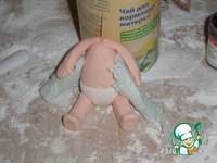 Приделываем ноги к туловищу. Я делала это на зубочистки. |