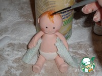 Прикрепляем к туловищу голову. Кистью прорисовываем волосы. |