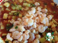 В отдельном сотейнике на растопленном масле поджариваем замаринованные креветки. |