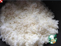 Теперь займемся рисом. Он готов - легкими движениями перемешаем его вилкой, чтобы поскорее остыл. |