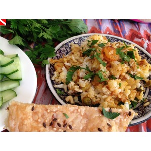 Бирьяни готов. Перед подачей можно разрезать на порционные куски и посыпать нарубленной петрушкой и измельченными грецкими орешками. |