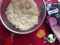 Промываем рис, даем стечь (чаще всего индийцы используют рис с длинными зернами - он всегда получается рассыпчатым). Рис сорта Басмати считается одним из лучших сортов риса. |