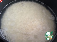 В холодную воду добавляем соль (1 ч. л.), доводим до кипения, закладываем рис и снова доводим до кипения. Накрываем плотно крышкой и варим 15 минут на медленном огне. |