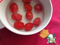 И снимаем кожицу с помидор ( у меня черри, поэтому их больше) |