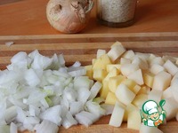 Овощи очищаем и нарезаем: морковь брусками, картофель и лук кубиками. |