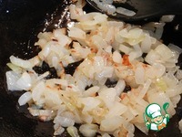 В сковороде разогреваем масло и обжариваем лук до румяного цвета. Затем добавляем мясо и обжариваем еще немного. |