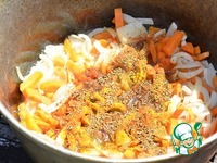 Я стараюсь не использовать готовые приправы для плова, сама собираю набор прянностей ( специй), мне кажется так они ароматнее. |