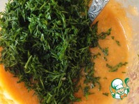 Добавляем мелко нарубленную зелень. Хорошо перемешиваем. Томатный соус-маринад готов! |