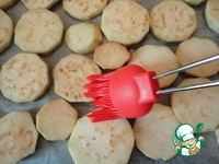 Выкладываем баклажаны на застланый пергаментом противень (взяла два и запекала одновременно на двух полках духовки). Смазываем с двух сторон растительным маслом при помощи силиконовой кисточки. |