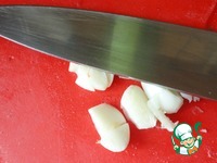 Там временем помидоры надрезаем крестообразно, заливаем кипятком на 2-3 минуты и снимаем шкурку. Режем дольками. |
