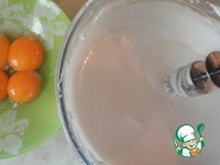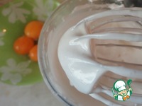 Постепенно продолжая сбивать, добавляем остальной сахар (всего 220 г). Сбиваем до полного растворения кристалликов сахара. Получается тугая крепкая пена |
