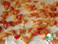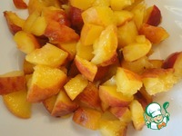 Выкладываем кусочки персиков. Вместо персиков можно взять клубнику, малину, инжир, дыню, абрикос и т. д. |