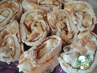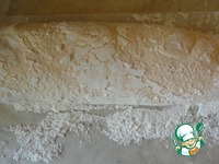 Переворачиваем и аккуратно снимаем пергамент на котором выпекался наш десерт. Фото не очень аппетитное, но это рабочий момент. |