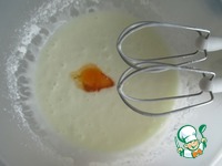 В смесь по одному ввести яйца (4 шт). Сильно НЕ взбивать. |