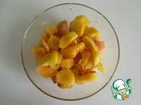 Персики (8 шт) очистить и нарезать довольно крупно. 2/3 от полученного количества аккуратно ввести в тесто. |