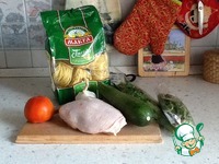 Нам понадобится - куриная грудка, лапша, цукини, помидор, лук, чеснок, масло, зелень, соль и перец по вкусу. |