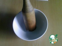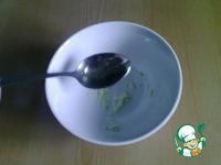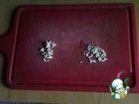 Чеснок измельчить (готовила на 2 порции и не стала смешивать на доске 2 зубчика, потому что класть их в разные суповые мисочки собиралась). |