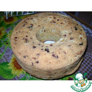 Все перемешать, вылить в смазанную маслом форму и выпекать в горячей (180-200) духовке около часа. Тесто должно подняться как минимум в два раза. Можно по желанию в тесто добавить цукаты, сухофрукты, как я и сделала в данном случае.