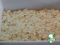 В смазанную растительным маслом форму выкладываем половину рисово - ореховой смеси. |