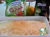 Яичную смесь выливаем сверху на рис. Посыпаем оставшимся сахаром и ставим запекаться в разогретую духовку (190 град.) до образования румяной корочки (минут 20-25 в зависимости от духовки) |