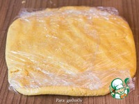 4. Тесто собрать в шар, расплющить толстым слоем и убрать в холодильник на 2 часа. |