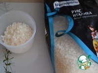Рис "Италика" ТМ "Мистраль" отвариваем в молоке, с добавлением сахара и ванильного сахара до готовности. Остужаем, добавляем сливки, пробиваем хорошо блендером. |