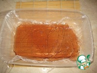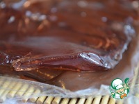 На шоколад аккуратно выкладываем желатиновый пласт из сока. |