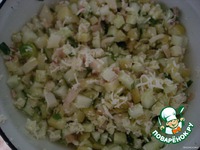 Все продукты нарезать кубиками, кальмары отварить и измельчить, все смешать, добавить зелень и горчицу, залить квасом. Приятного аппетита. |
