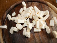 Плавленный сырок порезать мелкими кубиками, выложить в суп. |