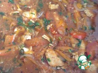 Добавляем помидоры, перемешиваем. Тушим в течении 5-7 мин. под крышкой, периодически помешивая. |