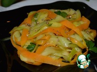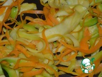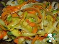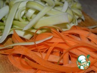 Овощи вымыть, очистить. Кабачок и морковь нарезать овощечисткой на полоски. |