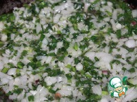 Репчатый лук мелко нарежьте. Обжарьте чеснок на масле до мягкости с двумя видами луками |