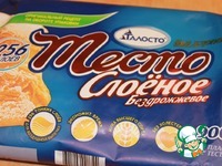 Слоёное тесто разделите на 2 части и тонко раскатайте |